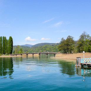 Frühling am Wörthersee. Rund um den See bei Sonnenschein im Mai. Peter Alexander Steg